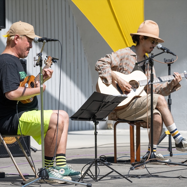 まぶしく降りそそぐ太陽の光を浴びながら、ゆるく穏やかなライブパフォーマンスを披露いただいた5組のアーティストの皆さま。