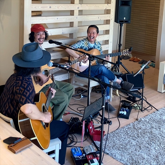 開放感あるリビングでのライブはとても心地よく、アコースティックギターの音色と歌声が、清々しい風と共にウッドデッキやポーチを抜けて、東展示場全体に広がっていくようでした。